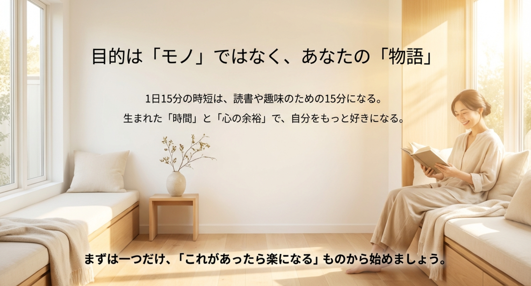 QOLを高める本当の目的は、便利な生活を手に入れることそのものではなく、それによって生み出された「時間」と「心の余裕」を使って、あなた自身がもっと自分を好きになったり、新しい何かに挑戦したり、あるいは何もしない贅沢を味わったりすることにあります。1日15分の時短が、お気に入りの本を15分読む時間になる。その小さな積み重ねが、あなたの人生という物語をより豊かで味わい深いものに変えていくのです。