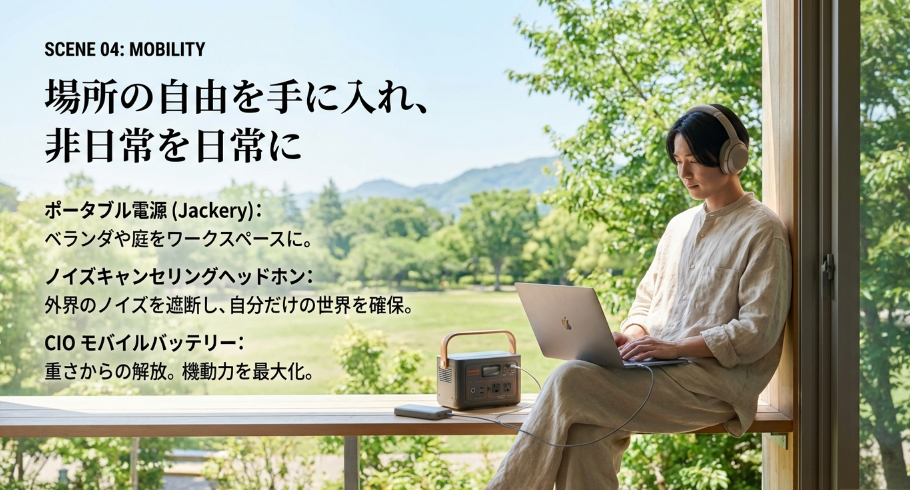 最新の技術を賢く取り入れることは、未来のQOLを先取りすることです。今、注目を集めているのが「ポータブル電源」の日常使いです。Jackery(ジャクリ)などの高性能なポータブル電源があれば、災害時の備えになるだけでなく、コンセントの場所を気にせずテラスや好きな場所で家電を使えるという「自由」が手に入ります。